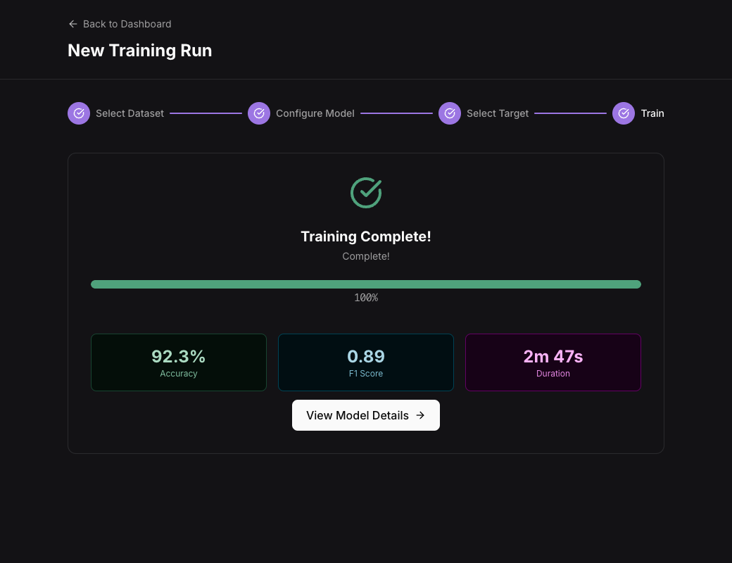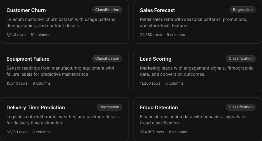 We'll help you train a prediction model on your actual dataset and walk through the leaderboard in your first working session.